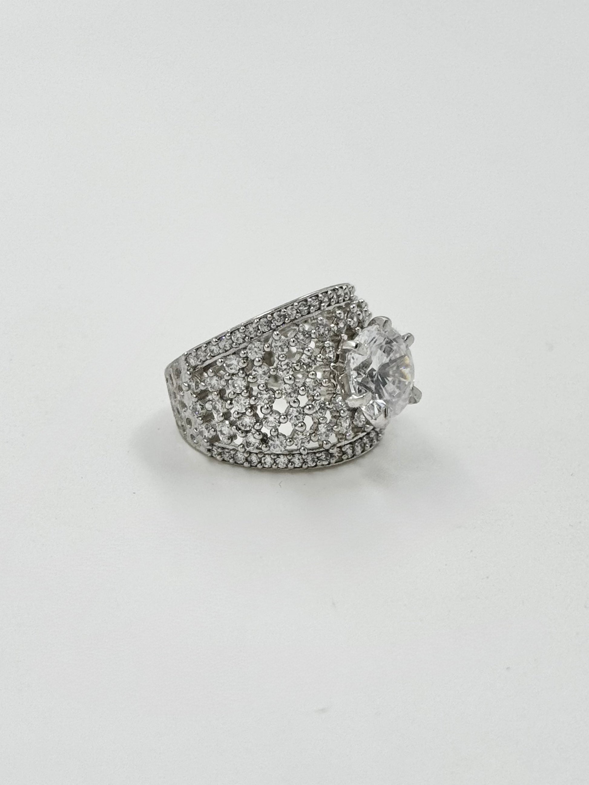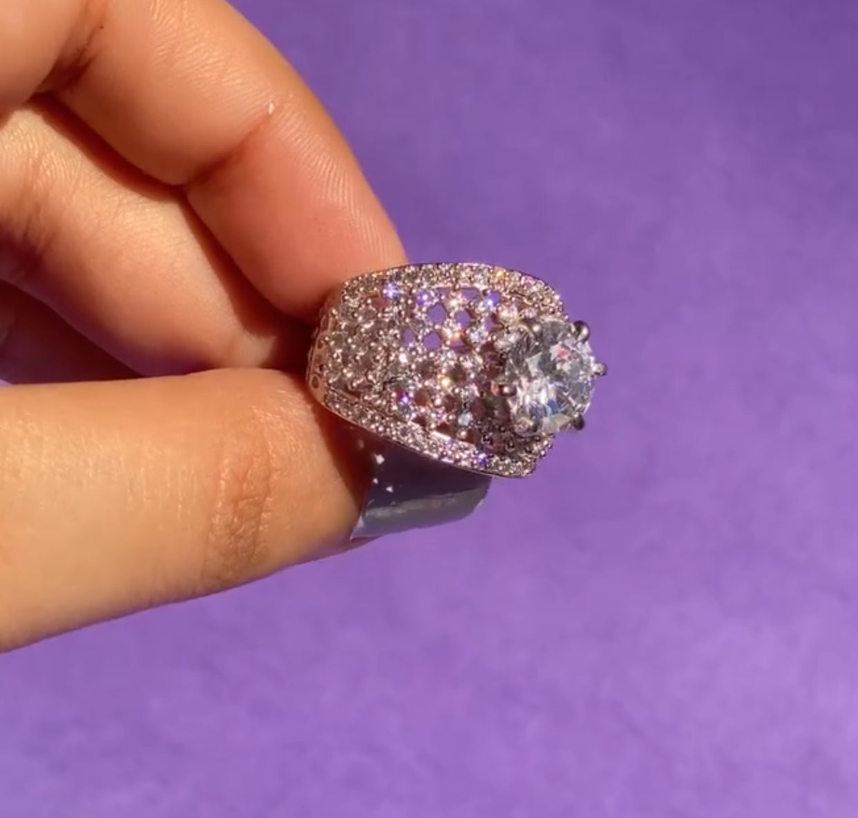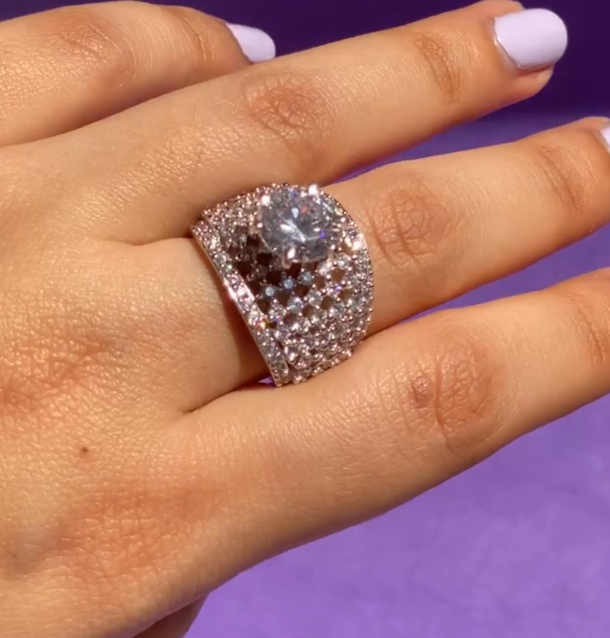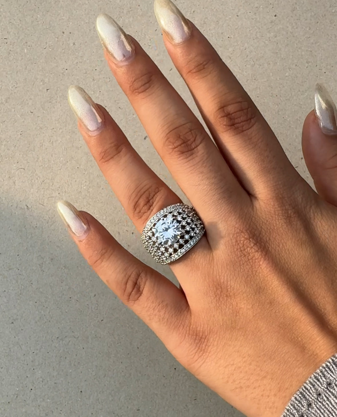 Introducing the Anne Sequence Cocktail Ring—a stunning piece adorned with a sequence of thick CZ stones that elegantly culminate in a brilliant round solitaire on top. This ring embodies sophistication and glamour, making it an ideal accessory for a chic and refined look.
