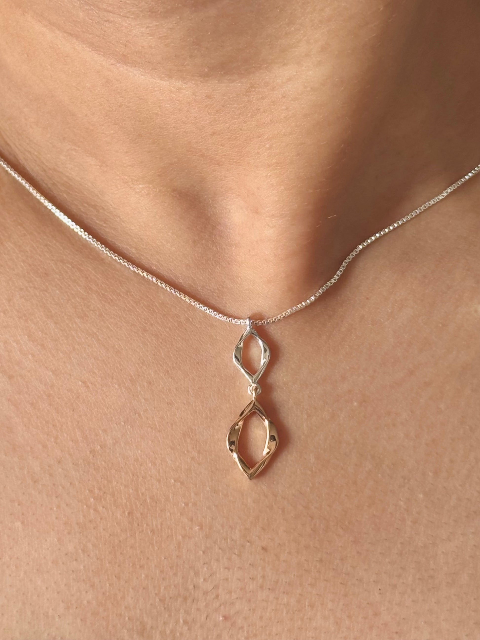 The Amalita Necklace is a minimal design inspired by a leaflets in dual color rosegold and silver making the necklace more versatile and elegant.