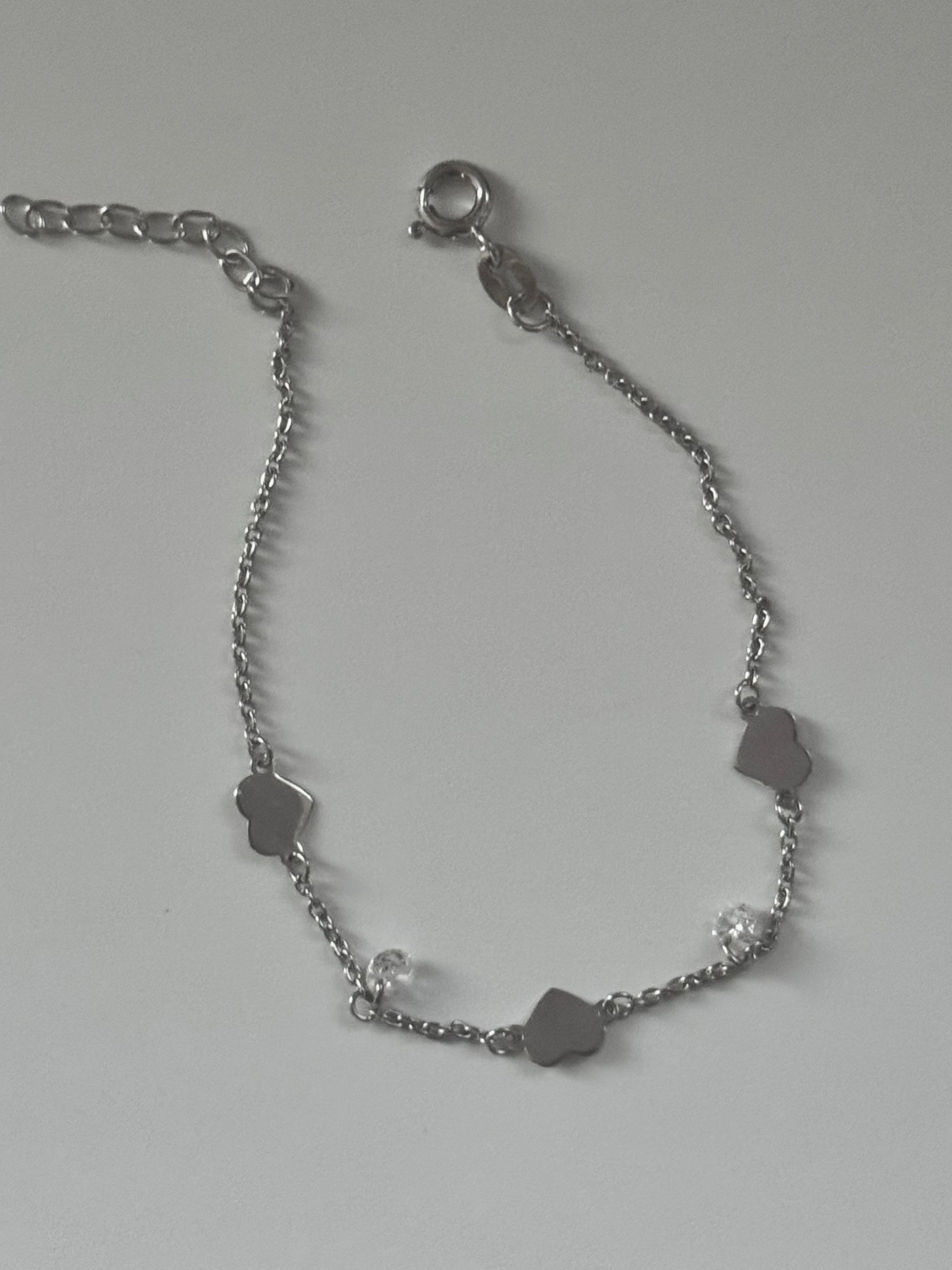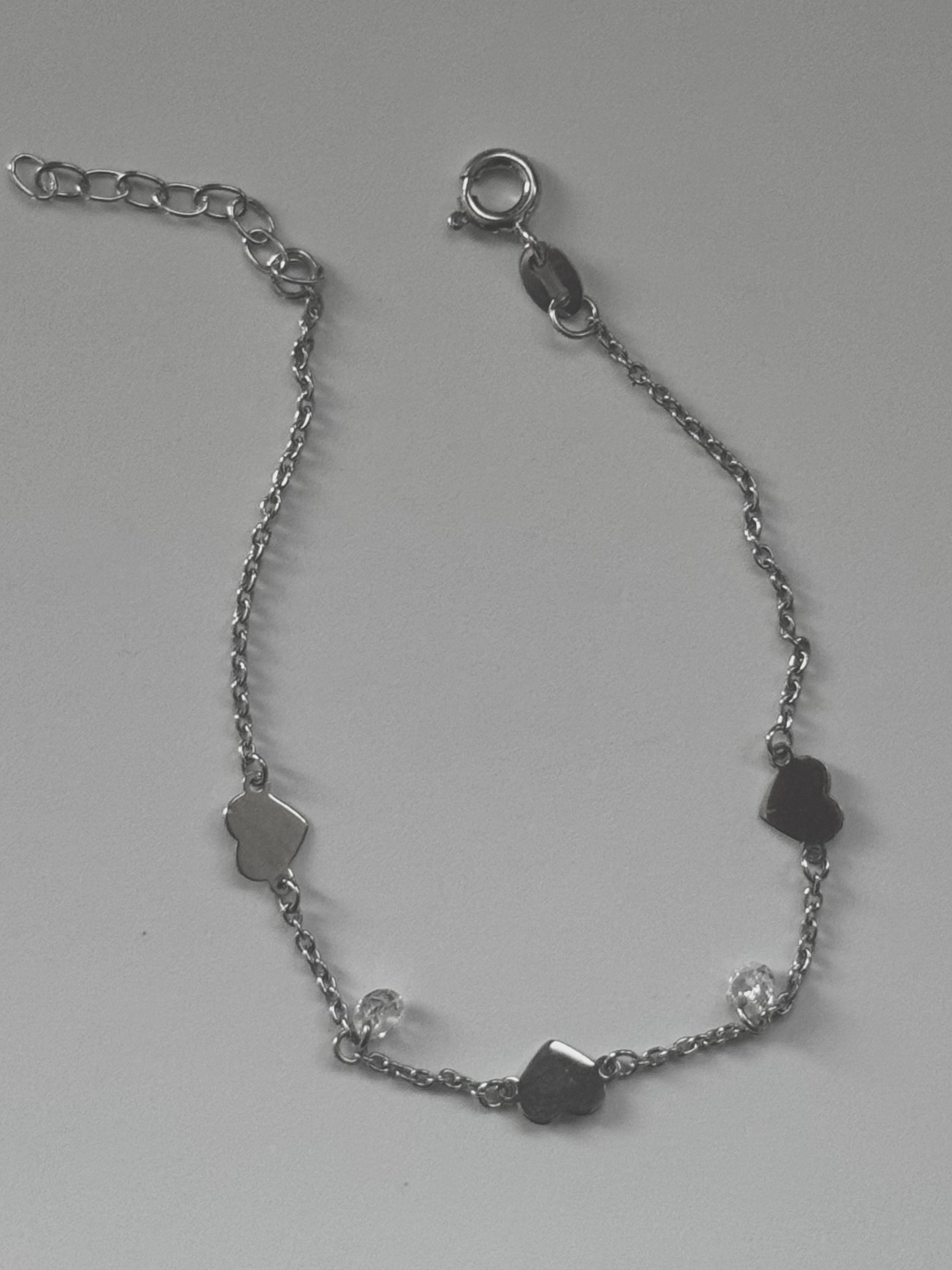 The belly Bracelet is a minimal and everyday bracelet perfect to gift your loved ones. It features little heart charms with solitaire hanging around in a dainty chain.