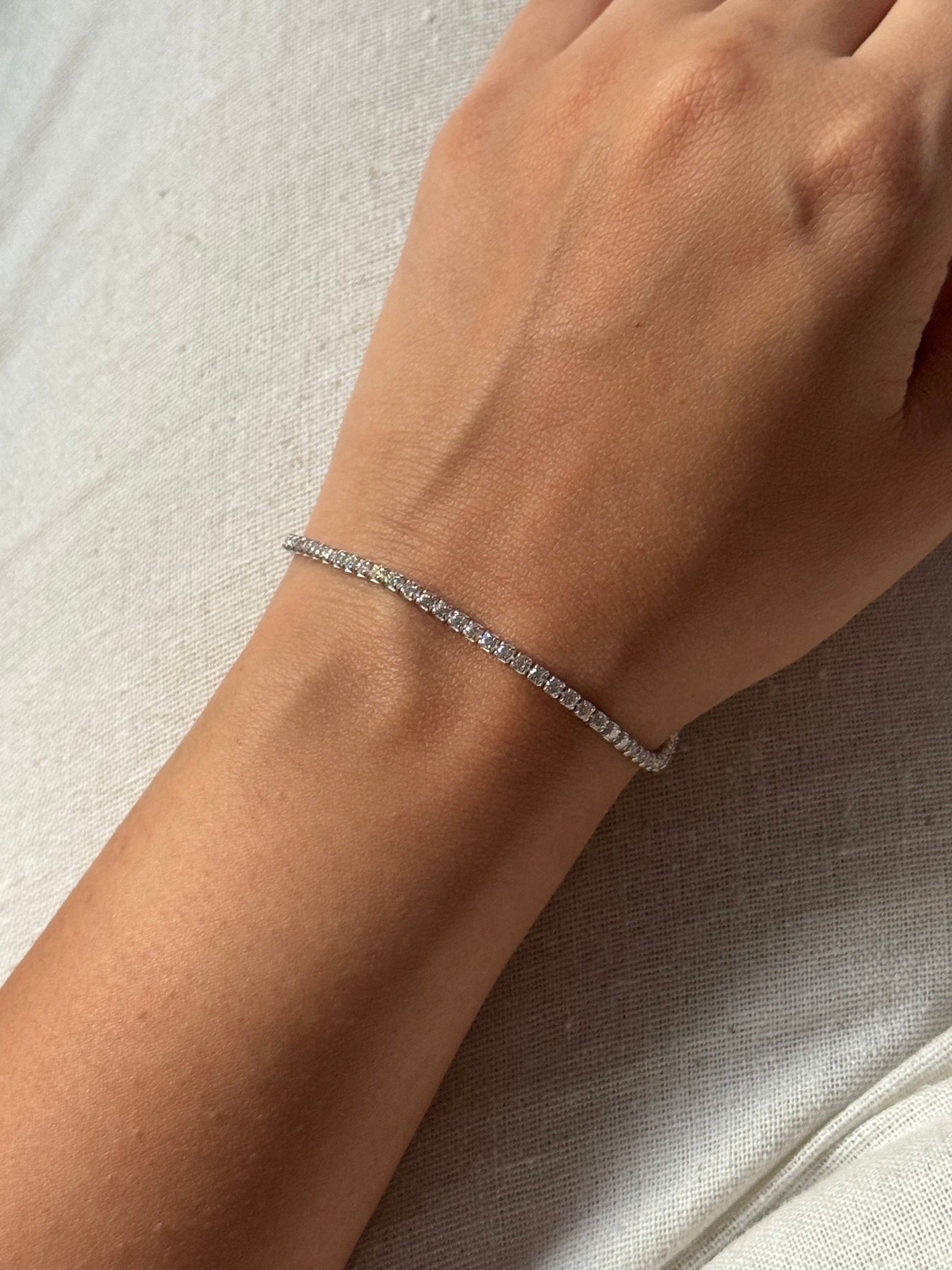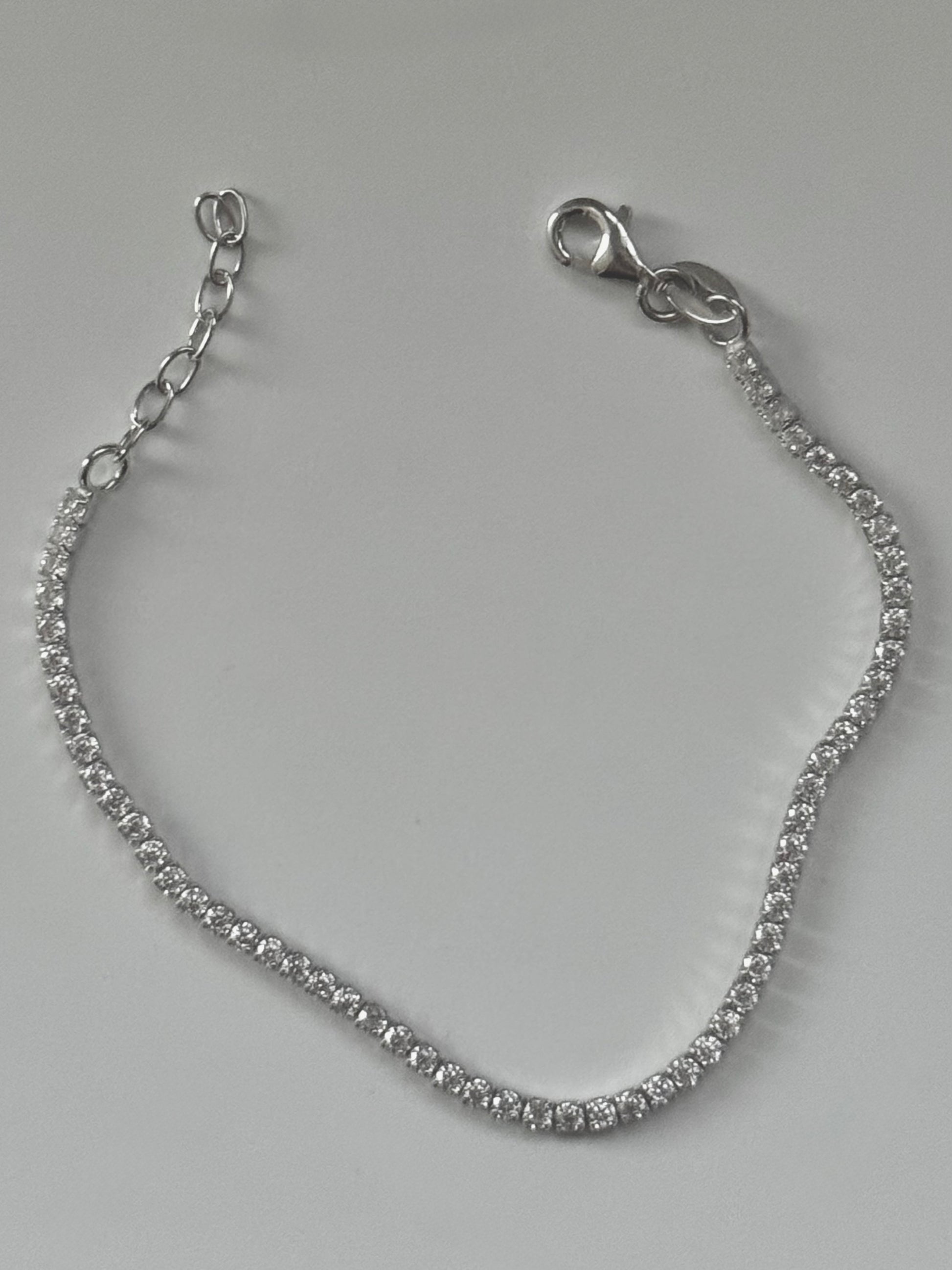 This sleek 92.5 sterling silver tennis bracelet boasts an adjustable band, offering versatility for any wrist size. Its timeless design and classic elegance make it a perfect accessory for any occasion.