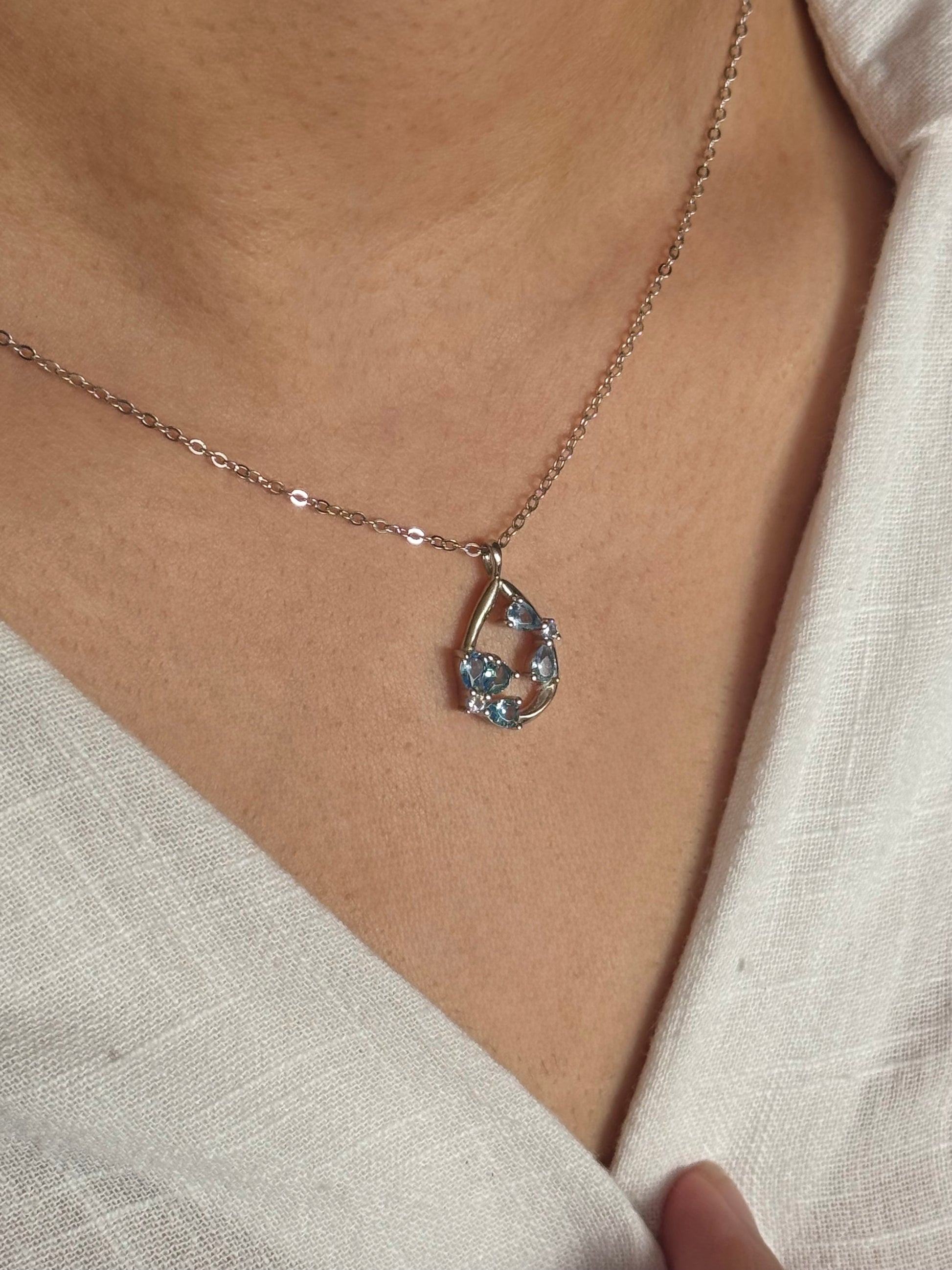 This beautiful blue coloured stone necklace this is a timeless statement of femininity and charm.