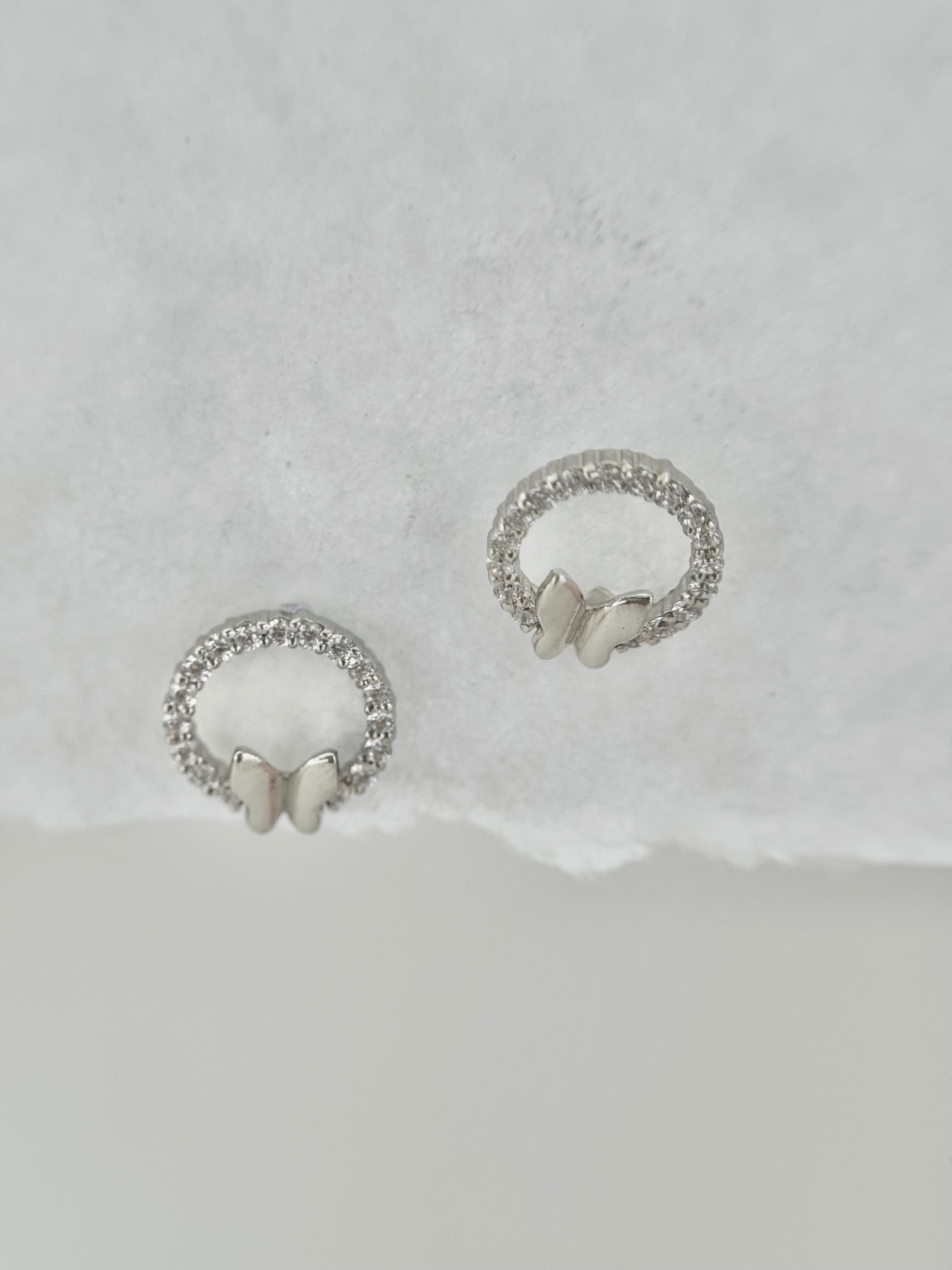 Dori earrings feature a butterfly with shimmering CZ stones giving you the perfect balance of elegance and modern minimalism.