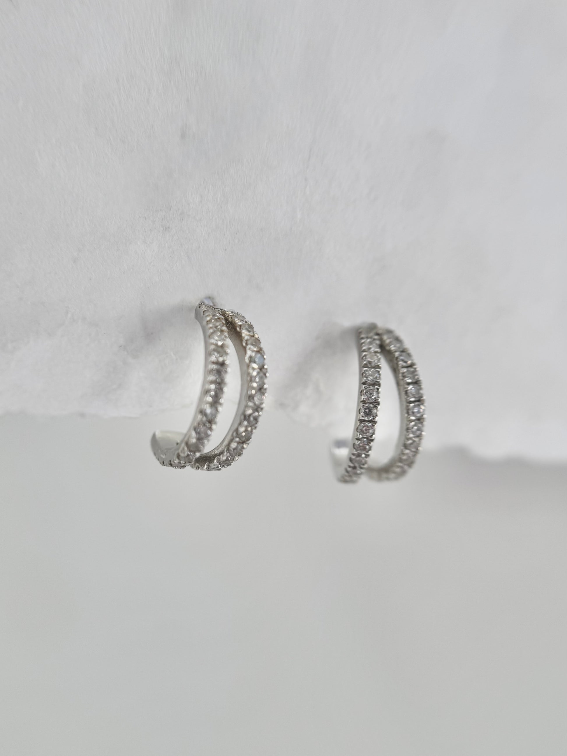 Dual Hoops earrings feature CZ stones giving you the perfect balance of elegance and modern minimalism.