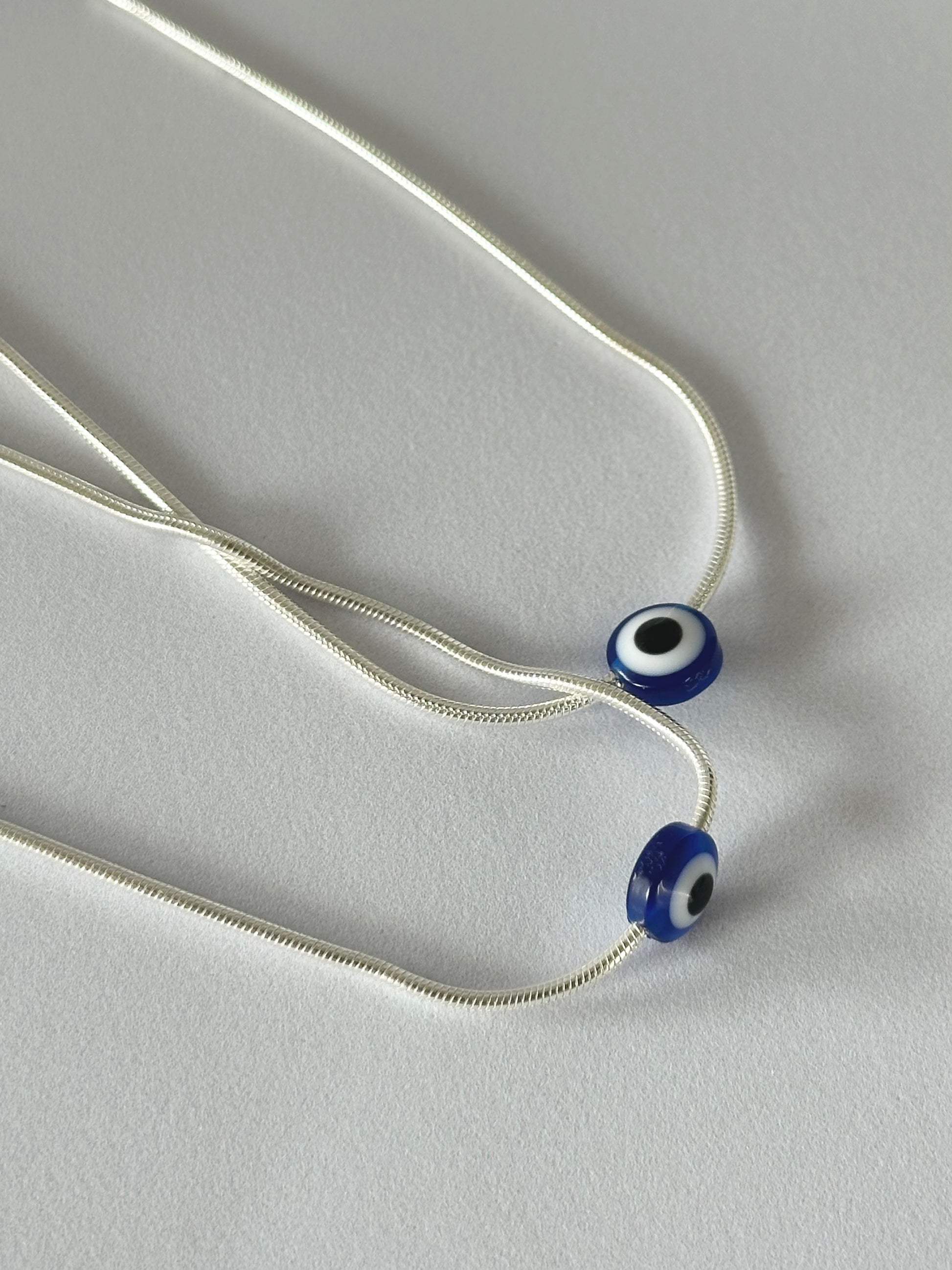 Handcrafted in 92.5 sterling silver, this sleek anklet features a movable evil eye bead  believed to protect your aura and shield you from negativity. Designed for daily wear, it’s anti-tarnish, waterproof, and skin-friendly, making it as practical as it is stylish. The minimal silver chain adds elegance, while the protective charm keeps you grounded and glowing every day.
