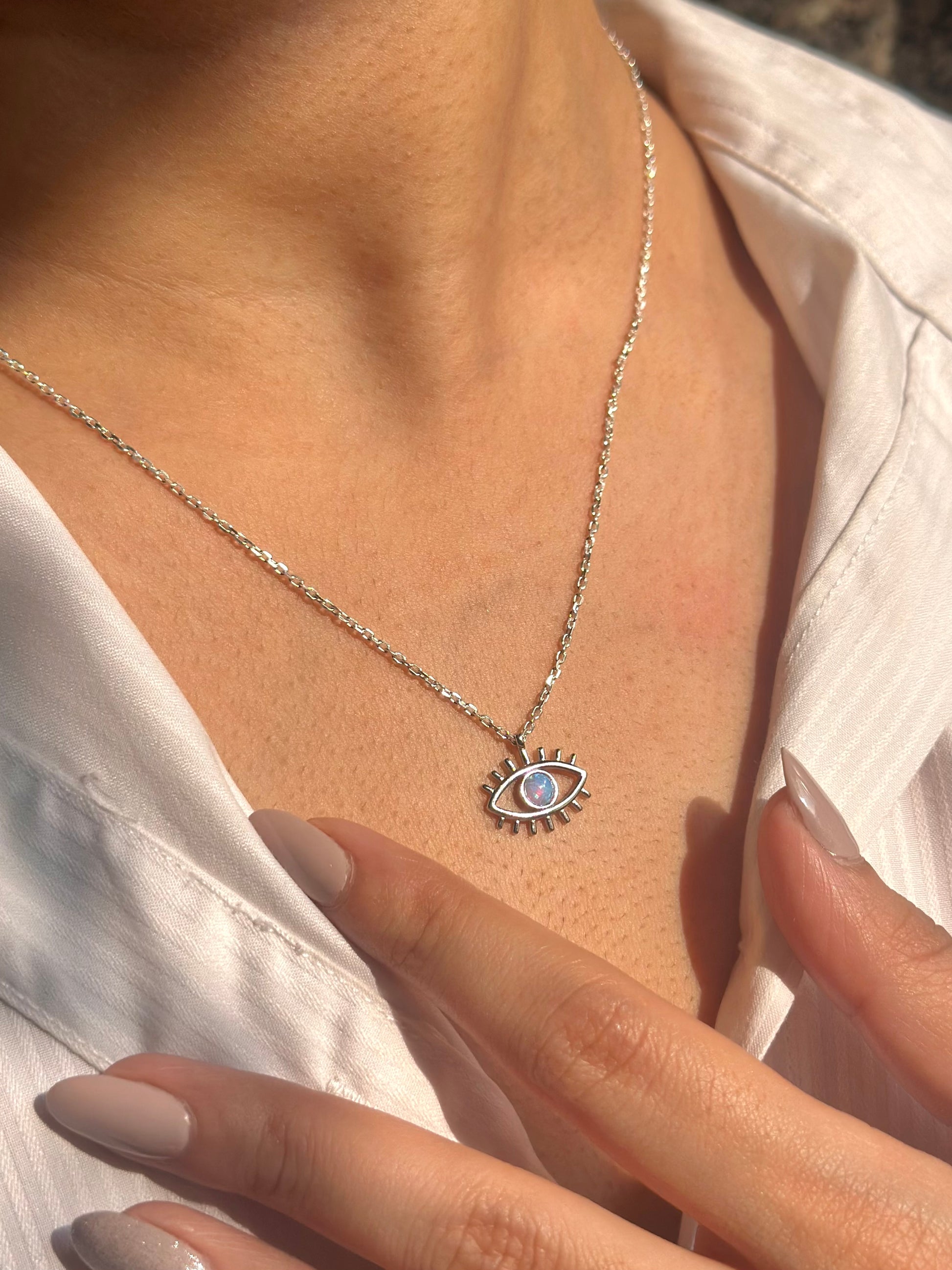 our mesmerizing Opal Birthstone Necklace. This stunning piece features a captivating opal, known for its enchanting play of color, nestled in gleaming 92.5 sterling silver.  Built to last, our Opal Pendant boasts an anti-tarnish finish and water resistance, making it the perfect everyday accessory.