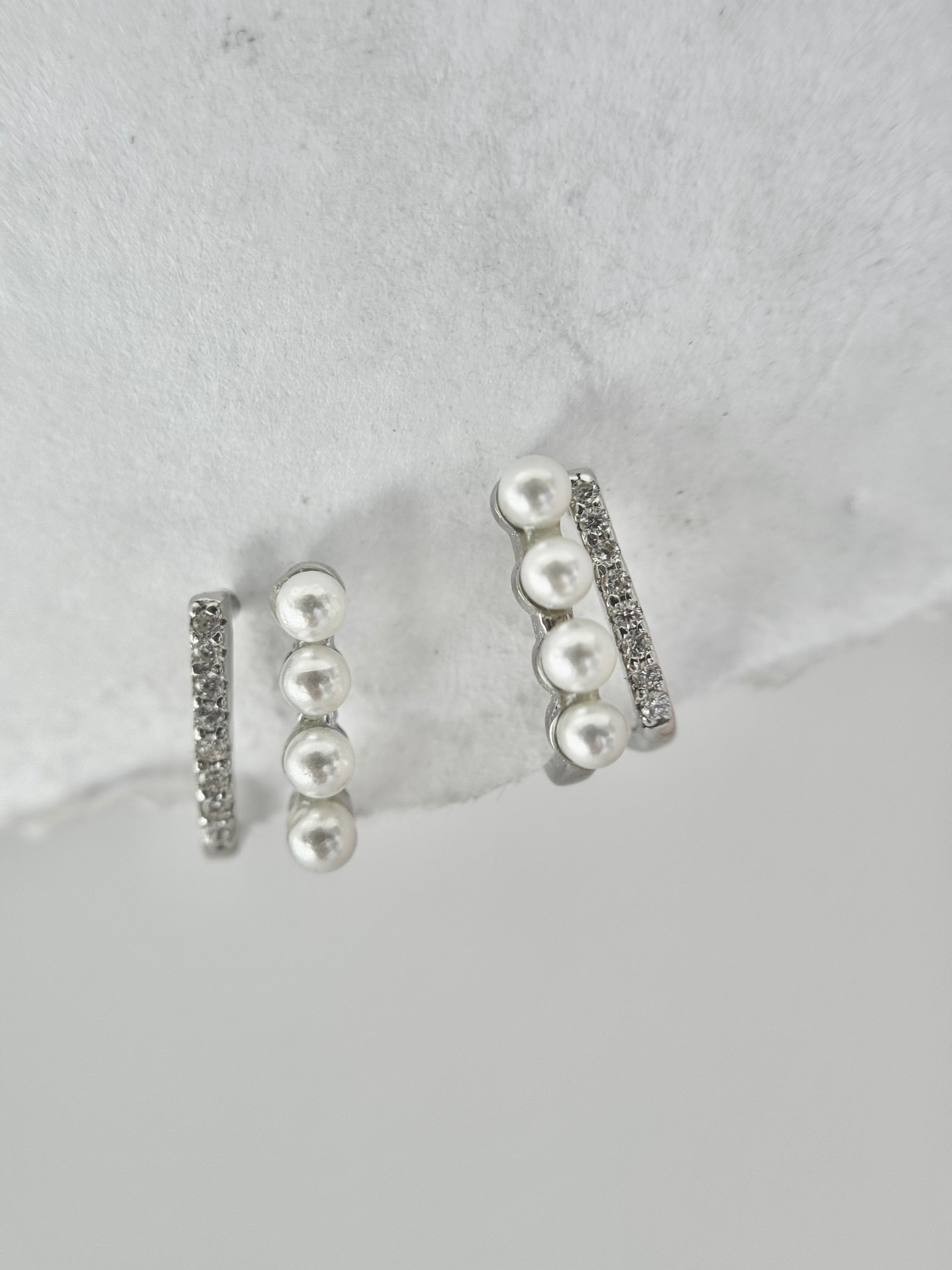 Pearlo earrings feature a pearls half lined with shimmering CZ stones giving you the perfect balance of elegance and modern minimalism.