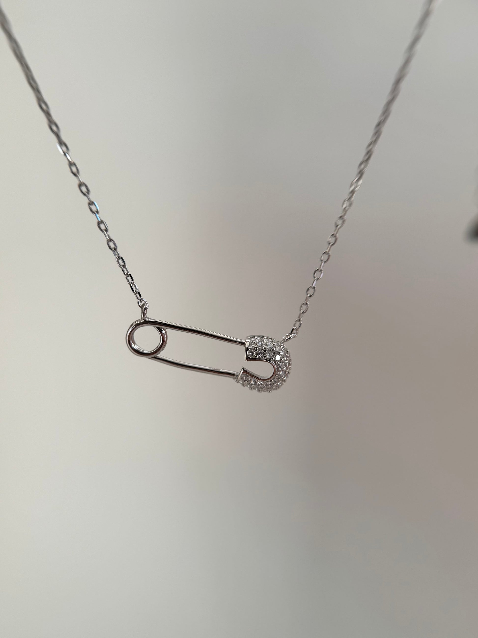 The Pin Me Up Necklace features a pin  charms on a dainty sleek chain.