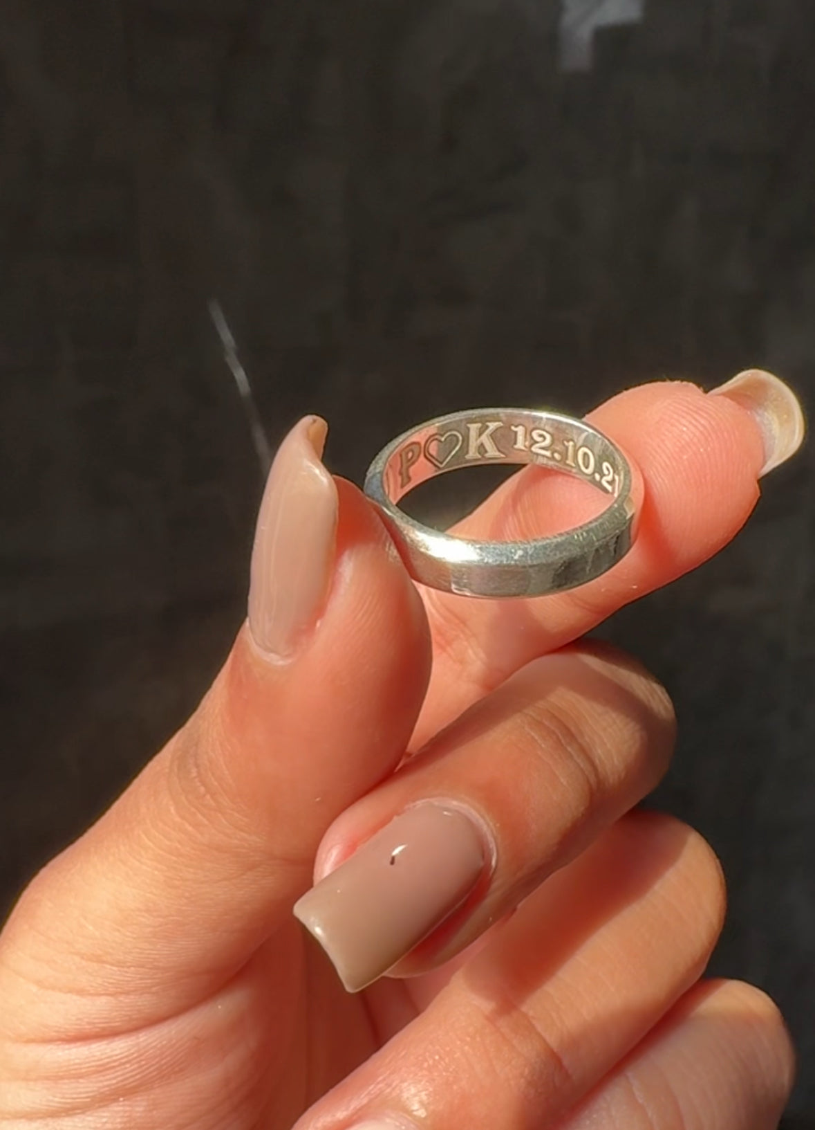 The sphere spinner band ring with engraving is a customizable piece, perfect for gifting to your loved ones. Its personalized touch allows you to etch heartfelt messages or meaningful dates, making it a thoughtful and cherished gift that holds a special place in their heart.