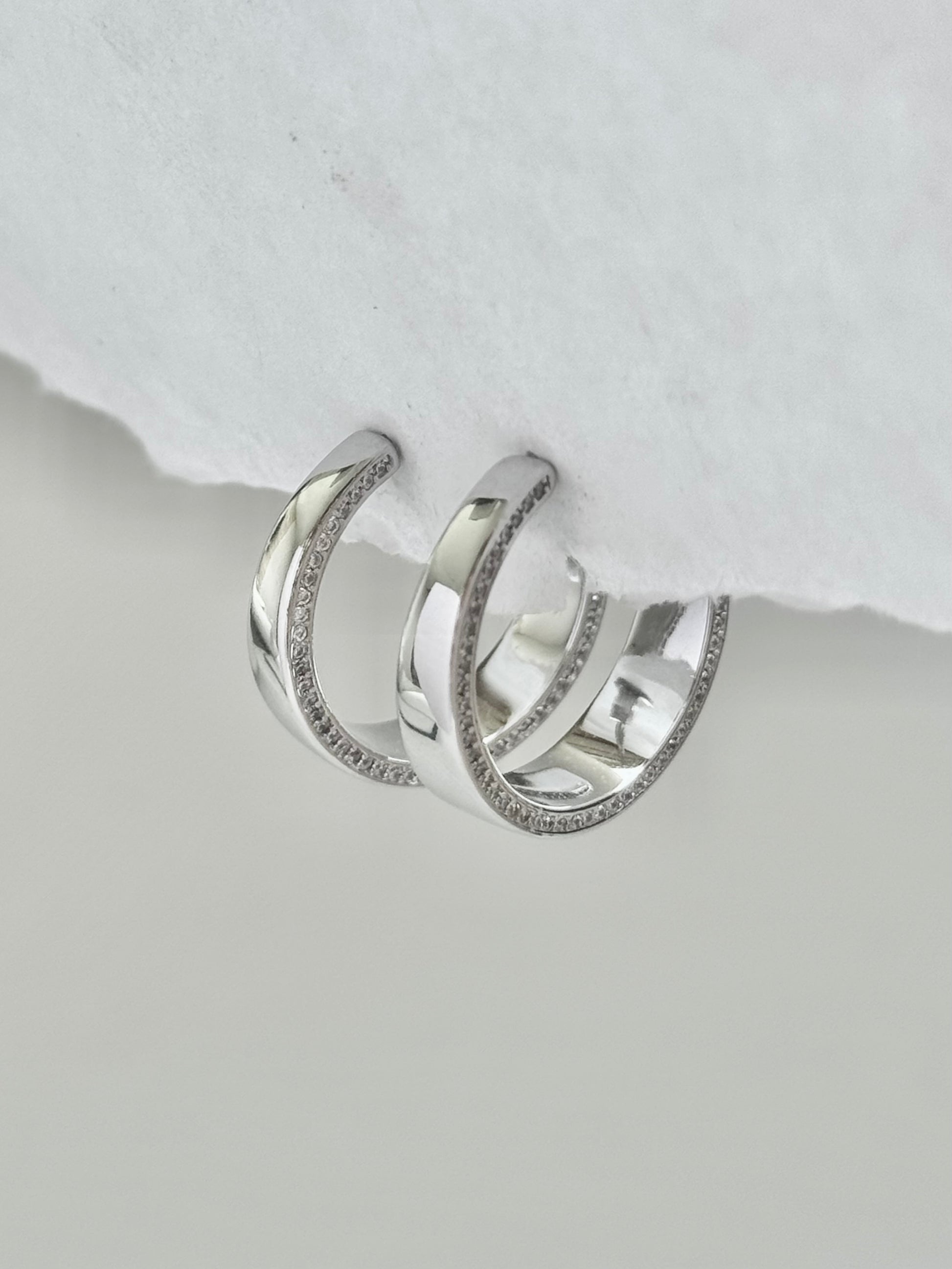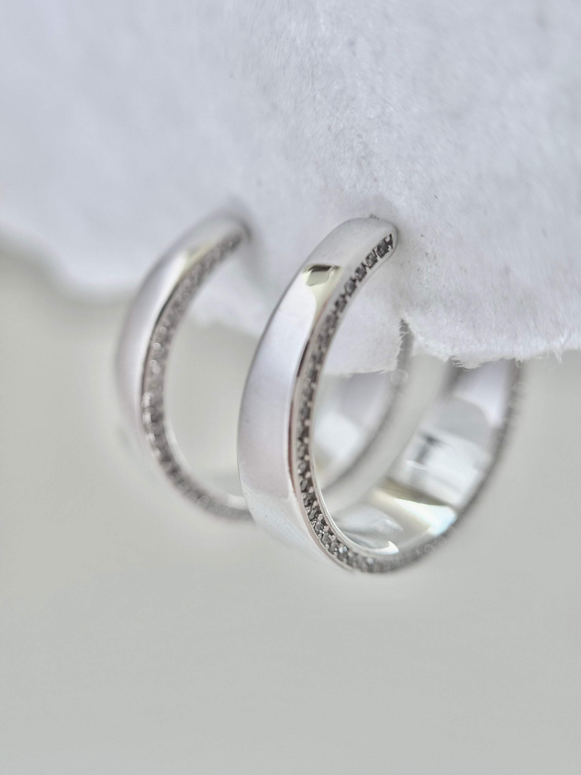 Hoops feature a solid C cut of silver with shimmering CZ stones giving you the perfect balance of elegance and modern minimalism.